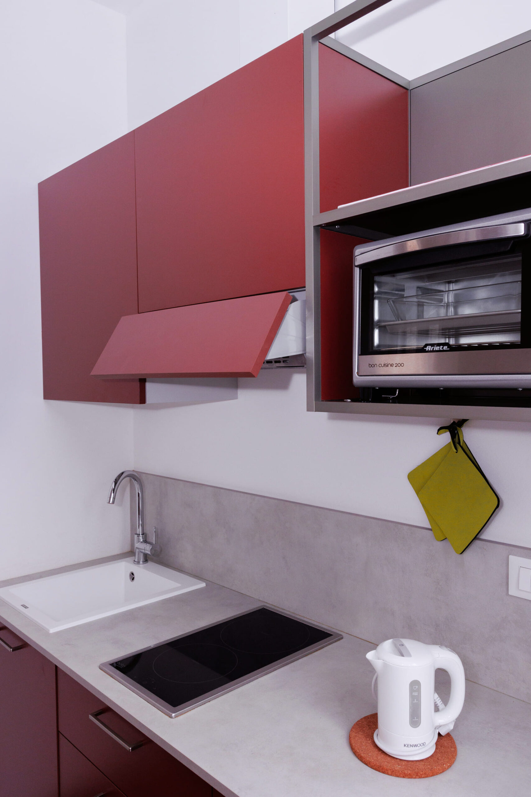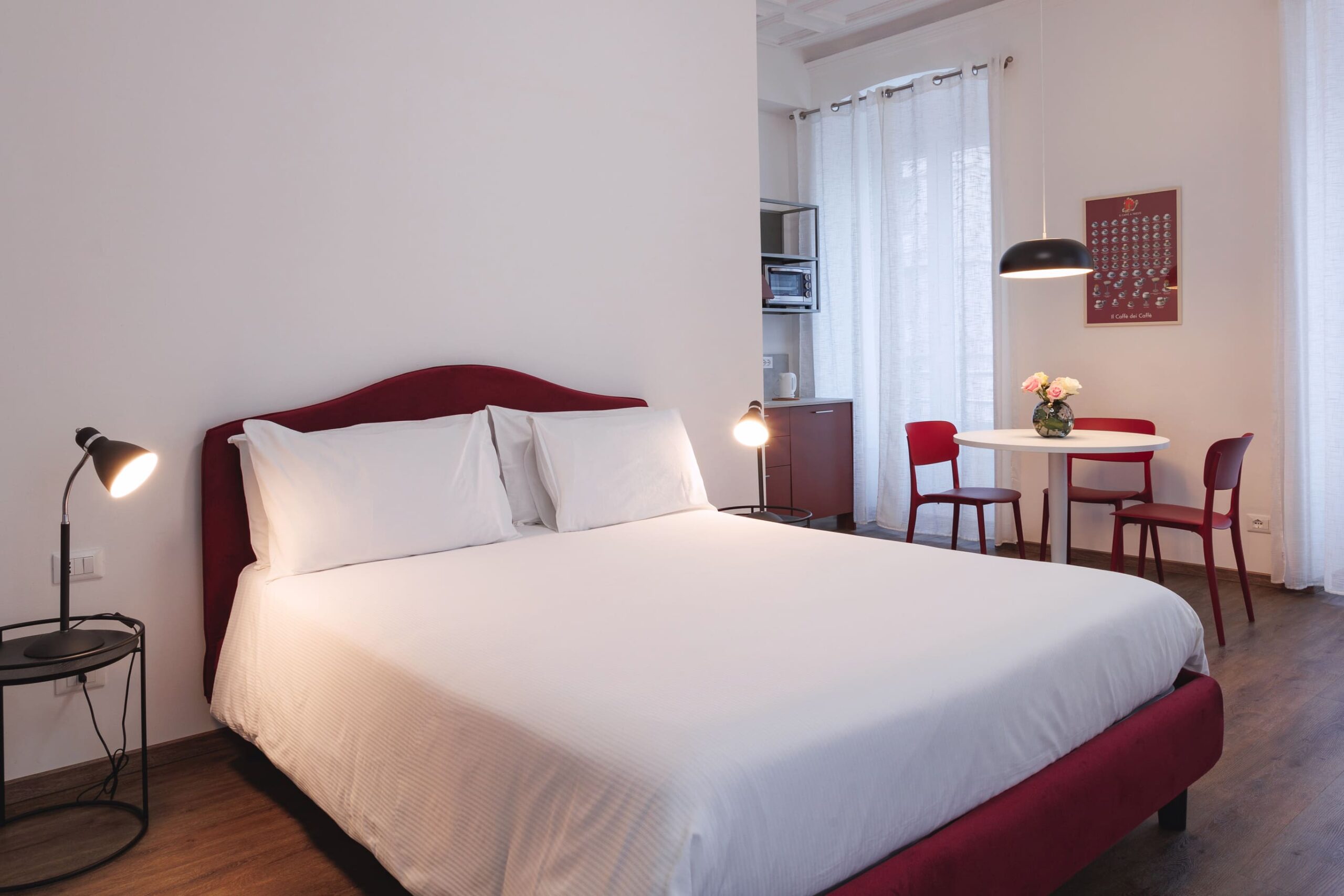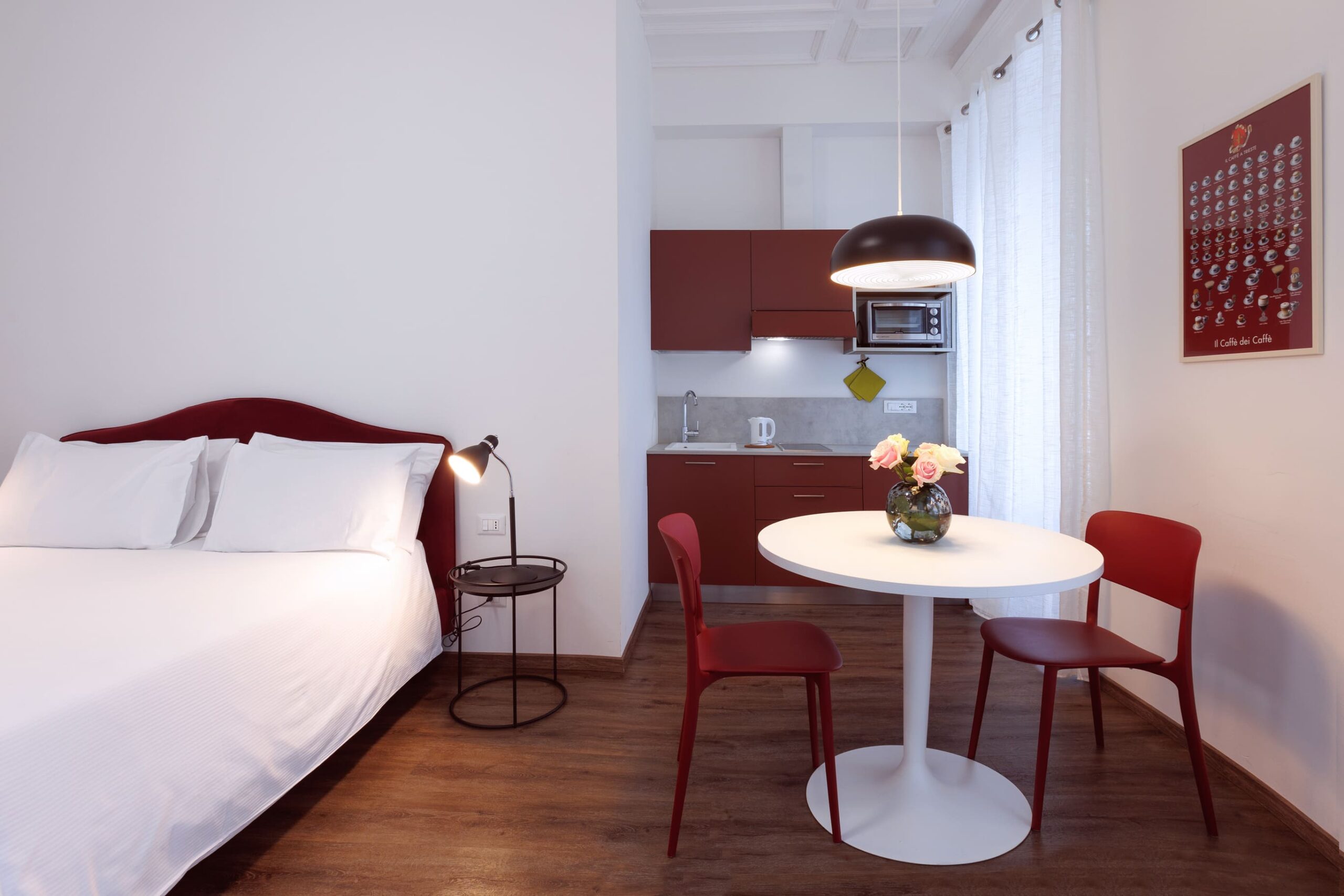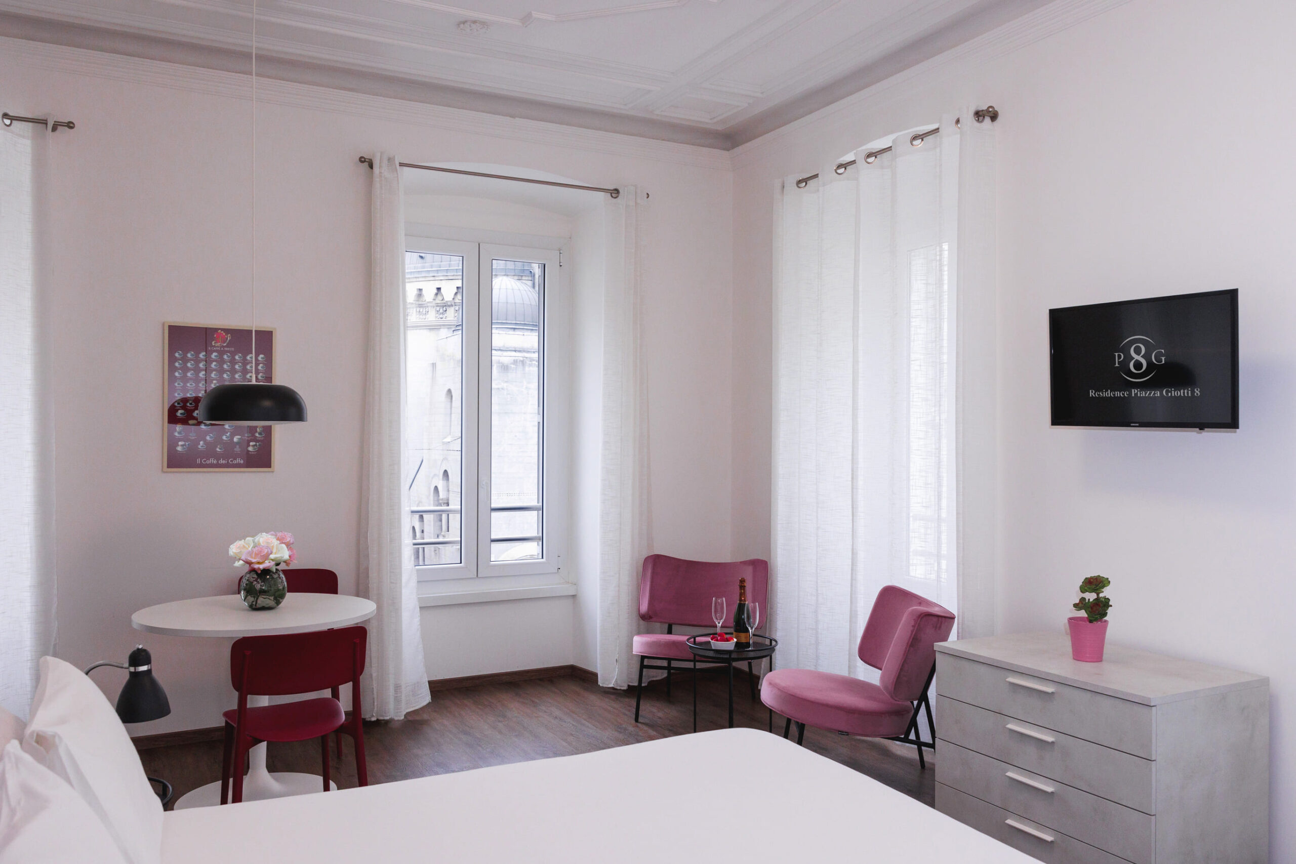 Un monolocale raffinato e funzionale, di circa 35 mq, perfetto per coppie o viaggiatori singoli. Dispone di un’accogliente area giorno con cucina, tavolo e letto matrimoniale, oltre a un bagno moderno con ampia doccia. Un ambiente curato nei dettagli, dove sentirsi subito a casa.