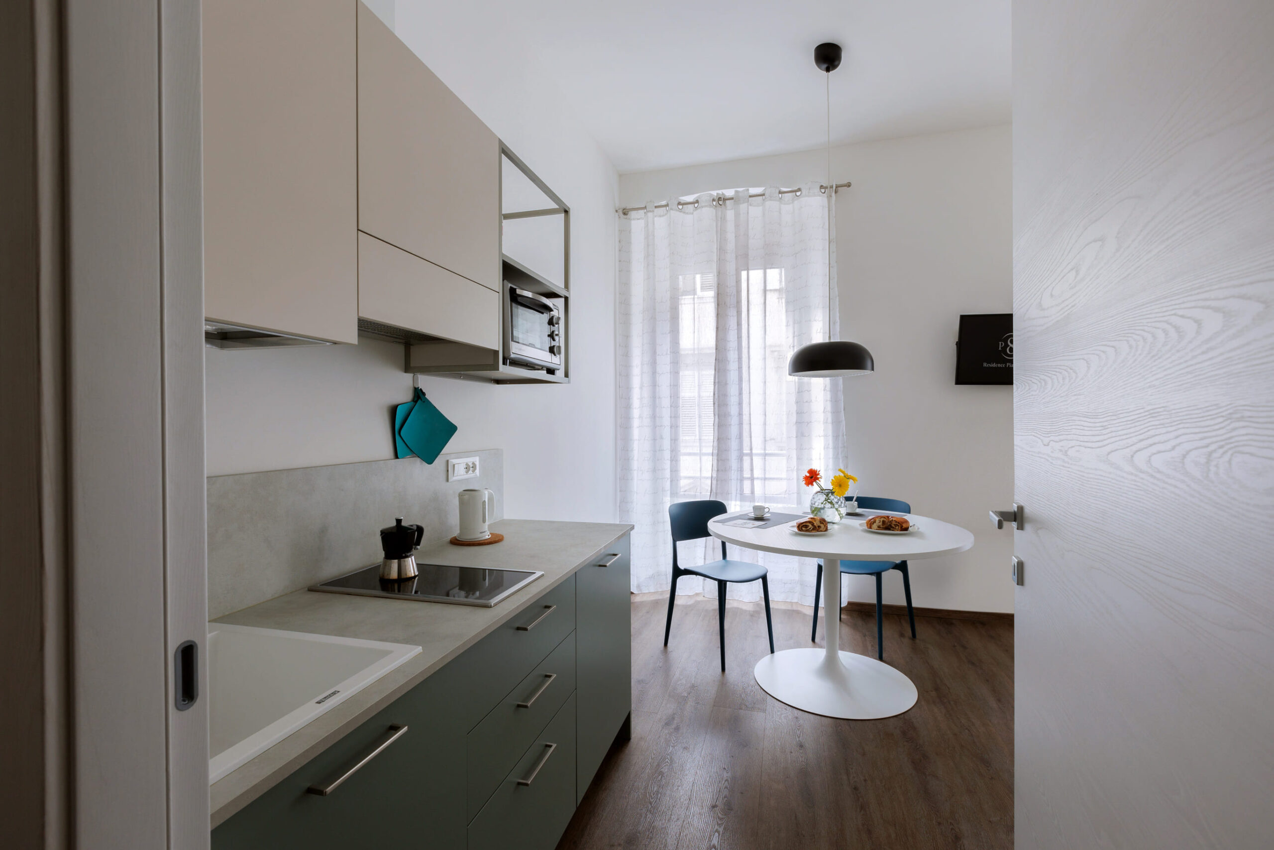 Il nostro appartamento più spazioso, ideale per chi desidera comfort e libertà. La Suite offre una luminosa zona giorno con cucina attrezzata, tavolo da pranzo e divano letto, oltre a una camera matrimoniale separata e un ampio bagno. Perfetta per coppie o famiglie, unisce eleganza e praticità nel cuore di Trieste.